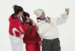 MILAN (AP) — Eileen Gu and all the other freestyle skiers wait for their scores by a large Powerade-…