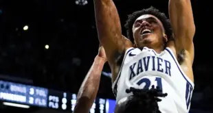 Xavier Musketeers forward Anthony Robinson (21) dunks the ball in the second half of a …