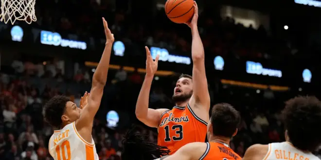 Illinois controlled much of the first half. Ivisic scored the last 10 of the half for the Fighting Illini, but the Vols finished the half on an 11-4 run with Cade Phillips’ layup with 51 seconds left putting Tennessee up 34-32 at halftime.