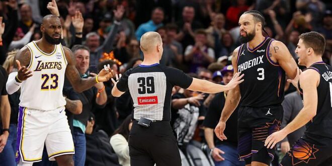James, 40, missed the technical free throw but was then fouled by Suns’ Devin Booker on a three-point attempt and made two of three free throws with three seconds left to put the Lakers back ahead.