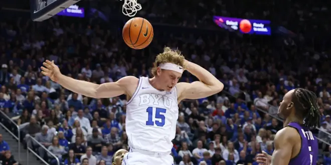 After the Cougars trailed much of the first half, Dybantsa took over after halftime. He scored BYU’s first five baskets in the period — highlighted by a thunderous dunk off a steal that gave his team a 54-42 lead.