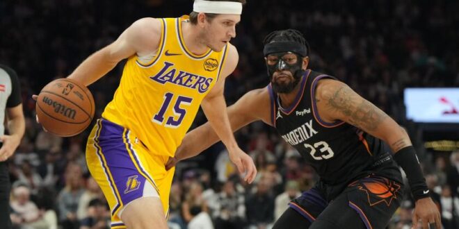 The Lakers’ defense collapsed in a 132-108 loss to the Suns on Tuesday at Mortgage Matchup Center, giving up a season-high field goal percentage (59%), tying their mark for most points allowed this season. Led by a combined 17-for-29 shooting from star guard Devin Booker (21 points) and Dillon Brooks (25 points), the Suns easily eclipsed the 56.5% they shot against the Lakers on Dec. 1.