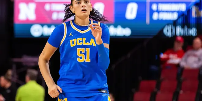 Sienna Betts’ layup with 4:03 left in the third period pushed the lead to 52-32. UCLA’s largest lead was 27 late in the game..