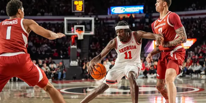 Georgia’s rebounding woes continued as the Bulldogs were outrebounded 43-35 but Georgia’s defense held Arkansas to one of its lowest scoring totals of the season. Arkansas entered the game averaging 90.5 points per game and scored less than 80 points for the fifth time in 18 games this season.