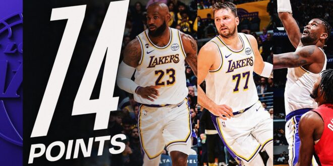 Deandre Ayton, Luka Dončić, and LeBron James led the Los Angeles Lakers to a 110–93 win over the Toronto Raptors, each …