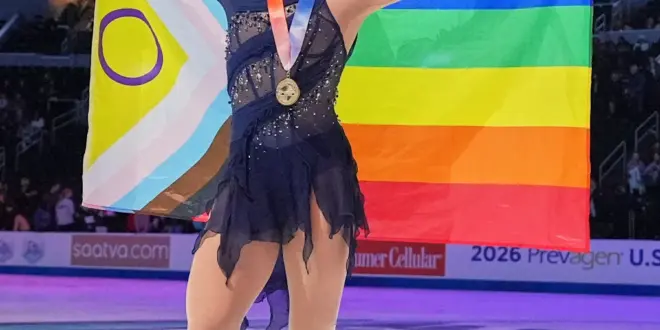 Scattered throughout the sellout crowd at the last worlds before the Milan Cortina Olympics were the equally conspicuous rainbow flags that for nearly 50 years have signified pride within the LGBTQ+ community. They started popping up at Glenn’s competitions a year earlier, when she carried one across her shoulders in celebration of her national championship.