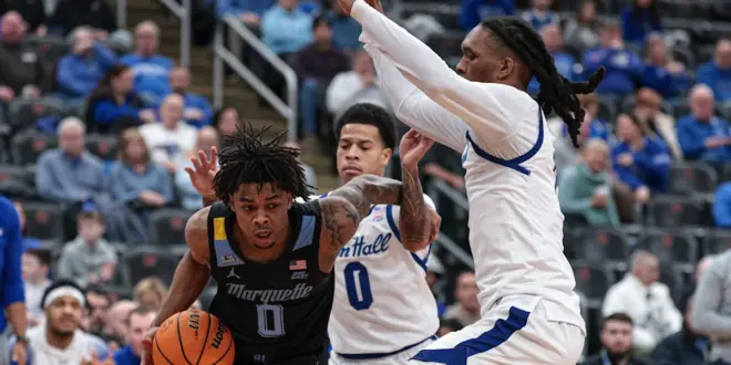 But the Pirates tangled up Nigel James just inside the free throw line, Adrien Stevens hustled the ball out of his hands instead of shooting a mostly open three, and Royce Parham coughed it up. Marquette even got another chance in transition with less than 15 seconds left, but James went to the rack and missed, even with Stevens floating down the sideline in theory waiting for a kick to shoot it. Didn’t happen, no bucket, SHU rebound, and that’s that.