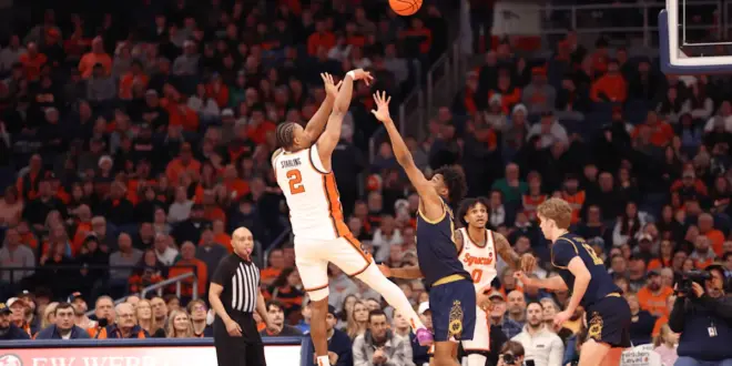 SYRACUSE, N.Y. — The Syracuse Orange basketball team was backcourt-led in the 14 point victory over Notre Dame on Saturday. Nate Kingz poured in a career-high 28 points while JJ Starling finished with 21 points.