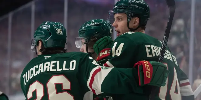Joel Eriksson Ek, Mats Zuccarello and Brock Faber also had a goal and an assist apiece for Minnesota, which won its third straight game and now has points in five straight games. Kirill Kaprizov, Vladimir Tarasenko and Tyler Pitlick rounded out the scoring for the Wild, while Jesper Wallstedt stopped 39 shots.