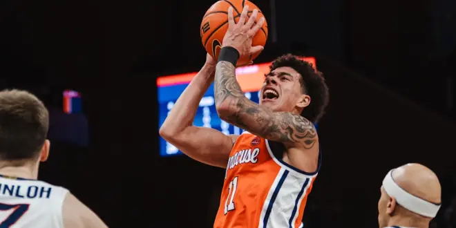 Virginia immediately responded with a corner three by Lewis, but would go on to miss four straight. The brief cold spurt led to a 6-0 burst by Syracuse which would see Starling and George finish tough baskets inside. George would also get a transition layup off a bounce pass from…
