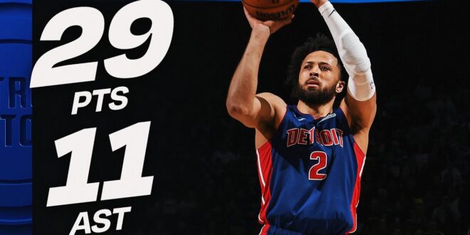 Cade Cunningham powered Detroit to a 131–124 win over Golden State, finishing with 29 points and 11 assists as the Pistons …