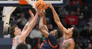 Ball’s counterpart Saturday proved to be Georgetown’s KJ Lewis, who scored 13 in the first half and a game-high 25 on the night. Leading by just two, UConn ripped off an 11-5 run to close out the half and enter the locker room leading 41-33. During the break, UConn honored Hasheem Thabeet, who was inducted into the Huskies of Honor.