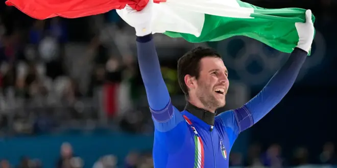 Davide Ghiotto, Andrea Giovannini and Michele Malfatti beat U.S. world record-holders Casey Dawson, Emery Lehman and Ethan Cepuran by 4 1/2 seconds to win the men’s team pursuit gold medal in speedskating on Tuesday at the Milan Cortina Olympics.