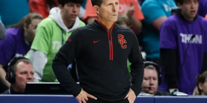 “A recent three-game win streak had helped pad USC’s bubble case, but losses to Ohio State and Illinois — the latter coming by 36 points at home on Wednesday — have sliced the Trojans’ at-large chances to around 50%,” Paine wrote. “If the season ended today, they might still secure one of the Big Ten’s last entries with the eighth-best résumé ranking in what’s tracking to be a 10-bid conference. But the models are less bullish, because USC is outside the top 50 of the predictive ratings, with a trio of Quadrant 1 games remaining. Those contests also offer opportunity, however, for a team that could use more résumé wins.”
