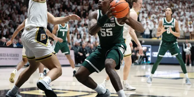 It’s not like they caught the Boilermakers on an off night. Purdue hit 12 of 25 3s and out-rebounded MSU. But the Spartans played the sort of game that’ll make them a tough out in March. They turned the ball over only six times, they got enough shooting and strong showings and moments from all sorts of players — from Kur Teng, who made 3 of 6 on 3-pointers, to Carson Cooper, who was the best post scorer on the floor, to their two freshman, Jordan Scott and Cam Ward, and so on. Jeremy Fears ran the show in the most difficult environment to do so, with 12 points, six assists and one turnover in 36 minutes. Jaxon Kohler, who had two of the more difficult matchups of his season, hung in there with a fancy-footwork bucket late for MSU’s final points. The Spartans hung on for the final two minutes from there, with Braden Smith’s 25-foot 3 pointer before the buzzer off the mark.