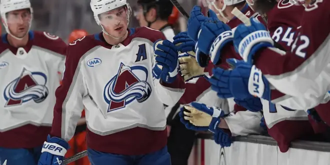 ANAHEIM, Calif. (AP) — Cale Makar had a goal and two assists, Nathan MacKinnon secured his fourth consecutive 100-point season with a third-period assist, and the NHL-leading Colorado Avalanche snapped the Anaheim Ducks’ five-game winning streak with a 5-1 victory Tuesday night.
