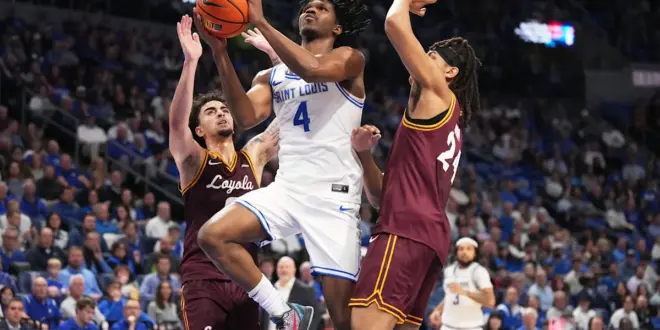 Saint Louis made up for it by shooting 60% overall and finally put away the game with a run of eight straight points capped by Paul Otieno’s layup that made it 70-54 with 4:49 to play.