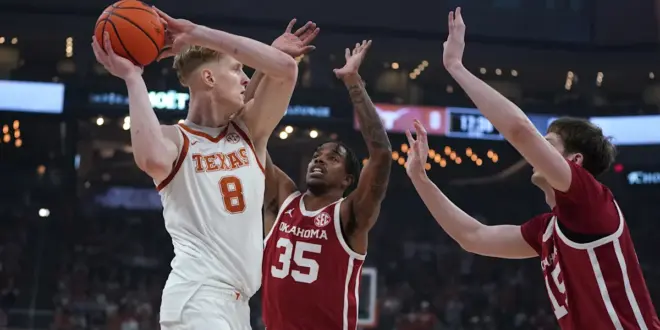 Texas held a 40-36 lead at the half, but couldn’t hold off the hot Sooners in the second half in front of a sell out Moody Center crowd.