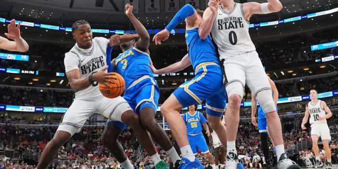 CHICAGO (AP) — UCLA star forward Tyler Bilodeau will likely miss at least one game because of a right leg injury he sustained in the Bruins’ 88-84 win over No. 8 Michigan State in the Big Ten Tournament quarterfinals on Friday night.