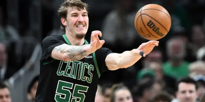 It was late in the second quarter of Boston’s final contest with the Philadelphia 76ers that Baylor Scheierman lost the ball.