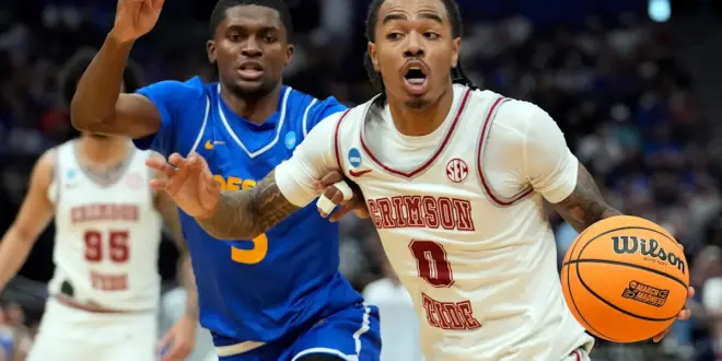 Freshman Preston Edmead had 24 points for the Pride, and his basket pulled the Pride within 67-62 with just over seven minutes remaining. Victory Onuetu’s dunk trimmed Alabama’s lead to 69-64 and ignited much of a crowd of 17,769 that threw its support behind the underdogs.