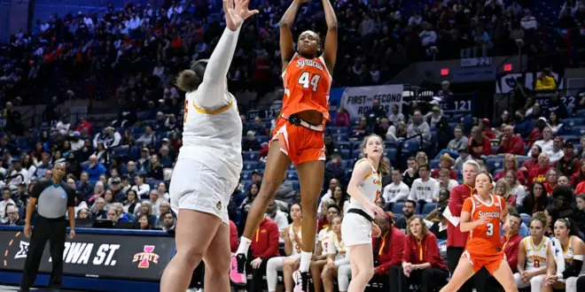 Laila Phelia had 18 points and Sophie Burrows added 13 points and nine rebounds for Syracuse (24-8). Jada Williams had 14 points, six rebounds and eight assists for Iowa State (22-10).