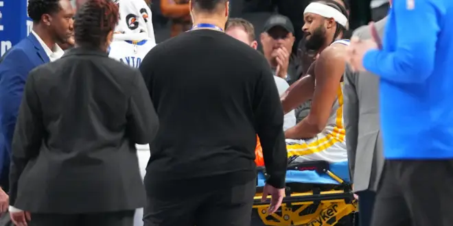 Play continued at the Dallas end until the ball went out of bounds. After the whistle, Warriors coach Steve Kerr put his hands to his face as the Mavericks’ home arena went silent. Players and medical staff surrounded Moody, who stayed down for several minutes before being taken off in a cart.
