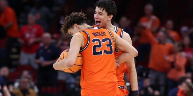 The Fighting Illini advanced to the regional final after a dominant 65–55 win over No. 2 seed Houston in the Sweet 16, a defensive masterclass that held the Cougars to just 34% shooting. Leading the charge for Illinois was All-America freshman Keaton Wagler, who continues to cement his status as a projected top-10 NBA pick. Wagler notched a double-double against Houston with 13 points and a career-high 12 rebounds, joining teammate David Mirkovic to become the first freshman duo in NCAA Tournament history to record double-doubles in the same game.