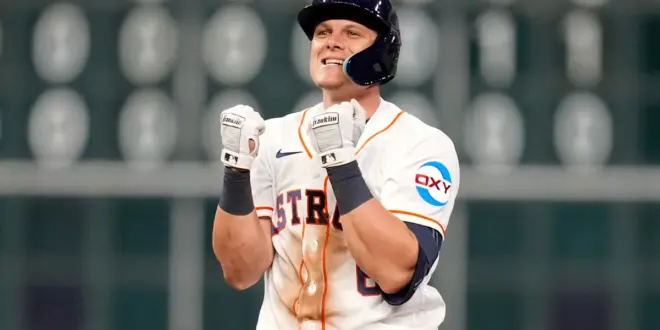 Trailing 6-4, the Astros tied the game on a single by Correa and a throwing error by Angels catcher Logan O’Hoppe. Houston took a lead on a single from Christian Walker.