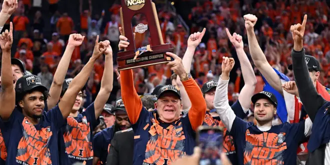 That includes the difficulty — and often years of drought — of making the Final Four. It’s something that, after a near trip to the Final Four in 2024, No. 3 seed Illinois finally experienced inside the Toyota Center in Houston on Saturday, March 28. The Fighting Illini defeated Big Ten foe, No. 9 Iowa, in the Elite Eight to become the first team to advance to the Final Four.