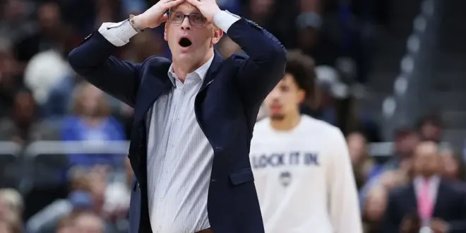 Connecticut coach Dan Hurley went viral shortly after Braylon Mullins’ heroic game-winning 3-pointer against Duke in the Elite Eight for appearing to headbutt official Roger Ayers in celebration of the shot.