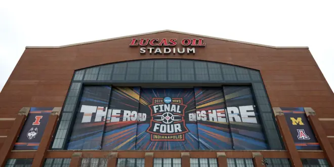 INDIANAPOLIS, INDIANA – APRIL 02: A general view of the exterior of Lucas Oil Stadium before the Men's Final Four on April 02, 2026 in Indianapolis, Indiana. (Photo by Luke Hales/Getty Images) | Getty Images