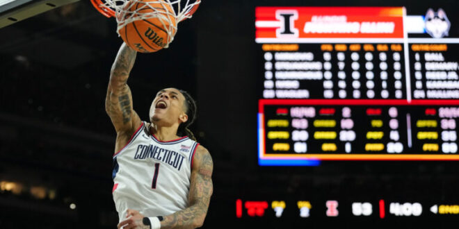 Ball, a junior from Leesburg, Virginia, scored 13 points during Saturday’s victory over Illinois. He knocked down 3 of 7 3-point attempts and contributed two assists. Ball has scored in double figures in the past three UConn tournament games.