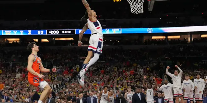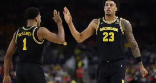 The Wolverines also have an injury issue. All-American forward Yaxel Lendeborg hurt his left ankle and wore a protective brace covering his left knee in the second half of Saturday’s 91-73 rout of Arizona. He played five minutes in the first half before reinjuring his left ankle. Team officials later announced he had hurt his knee as well.