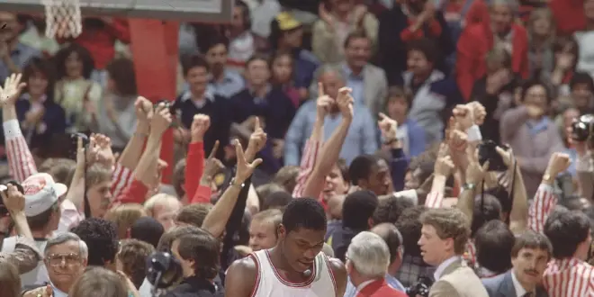 In the championship game, State somehow managed to keep Houston from dunking. In fact, we think the only dunk in the entire game was the final, legendary shot that Lorenzo Charles dunked when he caught Dereck Whittenburg’s last-gasp attempt that came up quite short.