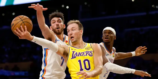 LOS ANGELES (AP) — Shai Gilgeous-Alexander had 25 points and eight assists, and Isaiah Joe hit six 3-pointers in the Oklahoma City Thunder’s 123-87 victory over the injury-depleted Los Angeles Lakers on Tuesday night.