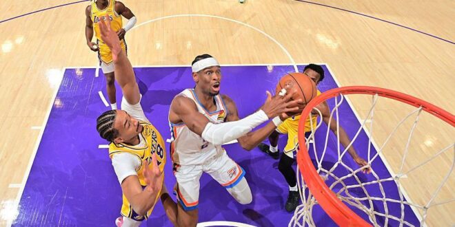 This time, despite being without Luka Doncic, Austin Reaves and LeBron James, they stayed with the Thunder into the second quarter before their opponents scored 23 points – conceding just five – in the final seven minutes and 16 seconds of the half to take control.