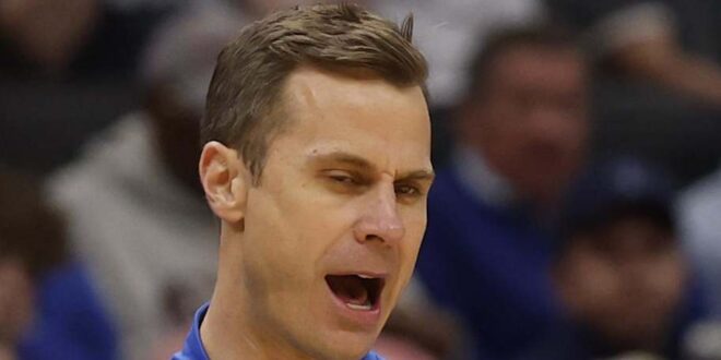 Mar 27, 2026; Washington, DC, USA; Duke Blue Devils head coach Jon Scheyer reacts in the first half during a Sweet Sixteen game of the East Regional of the men’s 2026 NCAA Tournament at Capital One Arena. Mandatory Credit: Geoff Burke-Imagn Images | Geoff Burke-Imagn Images