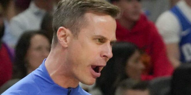 Duke Blue Devils head coach Jon Scheyer talks to a referee March 21, 2026 during the second half of the NCAA Men’s Basketball Tournament second round East Region game with TCU at the Bon Secours Wellness Arena in Greenville, South Carolina. | Ken Ruinard / USA Today Network South Carolina / USA TODAY NETWORK via Imagn Images