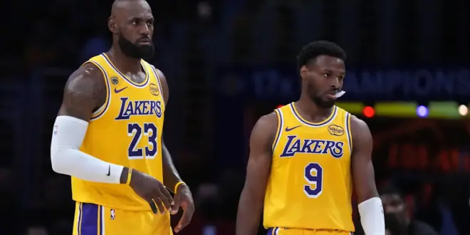 LeBron had a special day beyond playing with his son. With Luka Doncic and Austin Reaves out, the Lakers needed 41-year-old LeBron to shoulder the burden of being the team’s primary shot creator — and he thrived. In seeming constant motion all night, he finished with 19 points, 13 assists and eight rebounds. He was drawing defenders and setting up teammates such as Luke Kennard, who had a team-high 27.