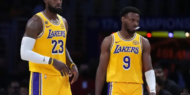 In the second quarter, James shared the court with his son Bronny for four minutes. It’s the first time a father and son have played together in an NBA playoff game.