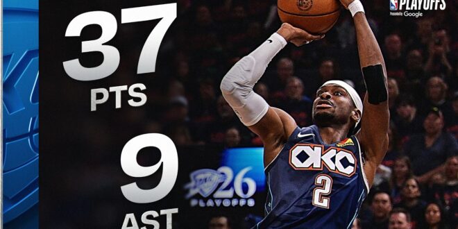 Shai Gilgeous-Alexander recorded his 29th career postseason game with 25+ points for the Oklahoma City Thunder, passing Gus …