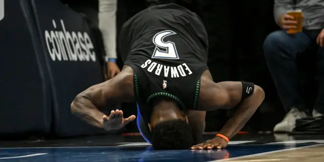 The injury occurred when Edwards went up to challenge a shot by Denver’s Cameron Johnson and just landed wrong, hyperextending his left knee. This is the opposite knee from the one with runner’s knee, which had been bothering him for weeks, and he had played through in this series.
