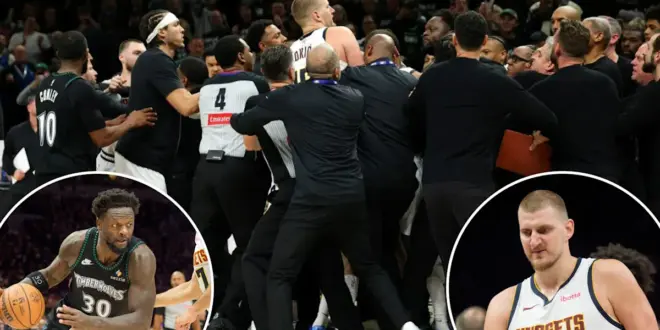 The game ended with the ejections of Denver’s Nikola Jokic and Minnesota’s Julius Randle after Jokic became angry when Jaden McDaniels made a meaningless layup with 2.1 seconds remaining and confronted the Wolves’ swingman near his bench.