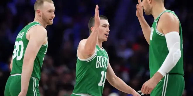 PHILADELPHIA (AP) — Payton Pritchard made six of Boston’s 24 3-pointers and scored 32 points and Jayson Tatum had 30 points and 11 assists to help the Boston Celtics spoil Joel Embiid’s return from an appendectomy and beat the Philadelphia 76ers 128-96 on Sunday night for a 3-1 lead in their first-round playoff series.