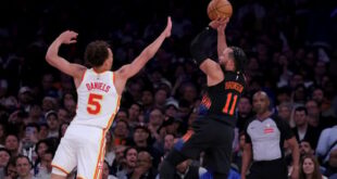 NEW YORK (AP) — Jalen Brunson scored 39 points, nearly extending his own franchise record for 40-point playoff games, and New York routed Atlanta for a 3-2 lead in the first-round playoff series.